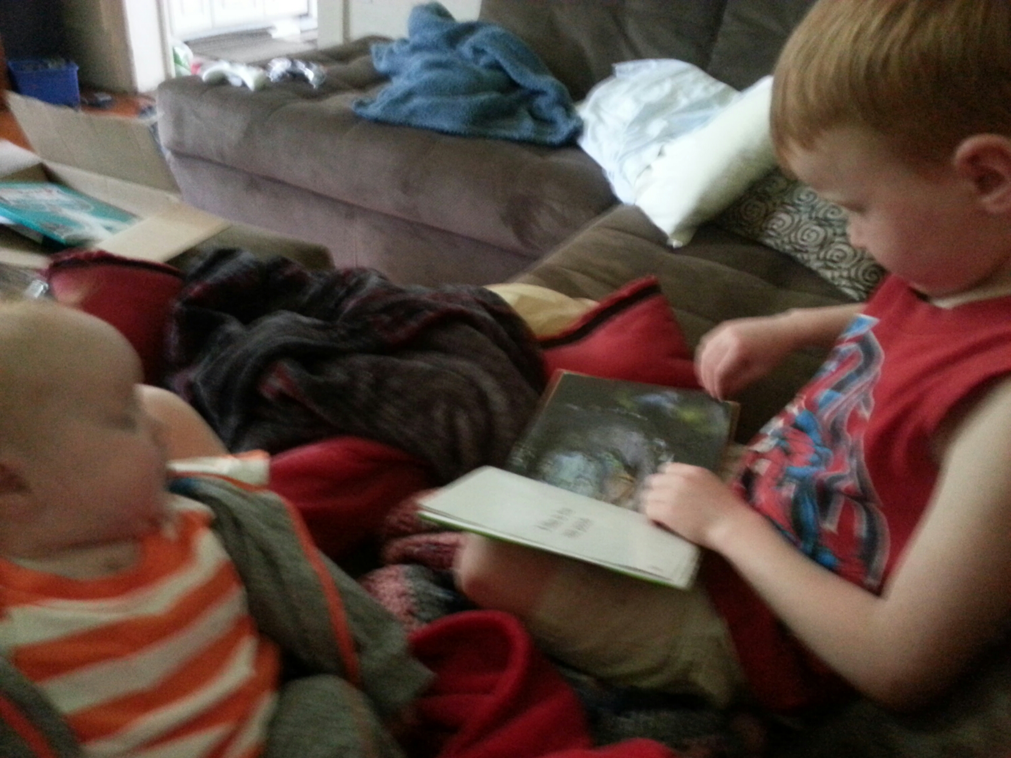 Isaac is reading to Marshall.