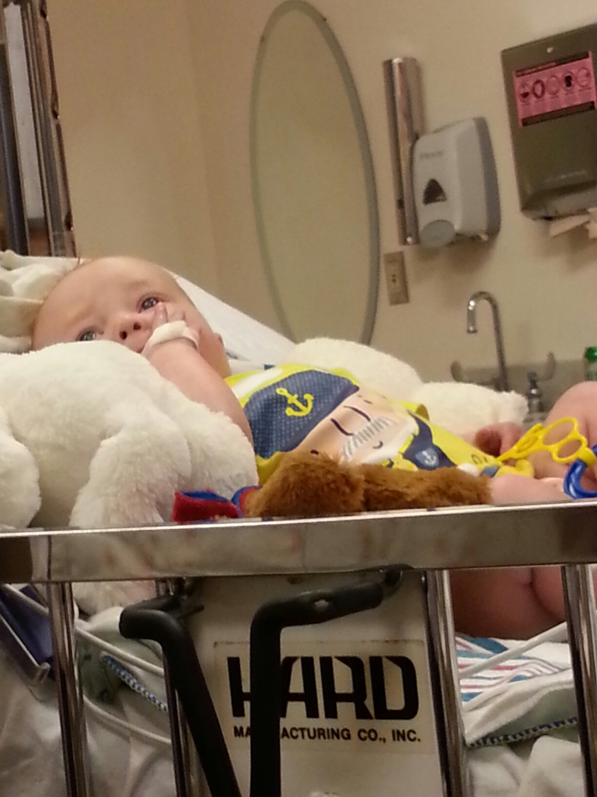 And IN EVEN BETTER NEWS WE ARE ALL SOOO THANKFUL Marshall is back to his “mischief.”  He yanked his IV and his cardiologist team here agree with his choice to keep it out ;-).  He is smiling.  He is playing.  He is cooing again.