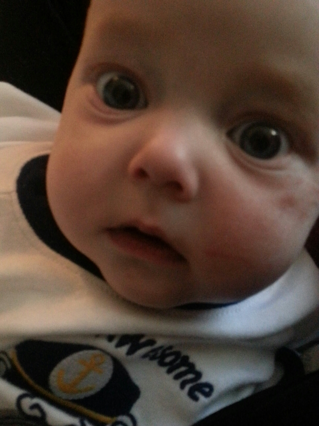 He only smiles around once per day instead of one million because he feels so lousy.  But those smiles mean so much to us so we will take ’em ;-).
