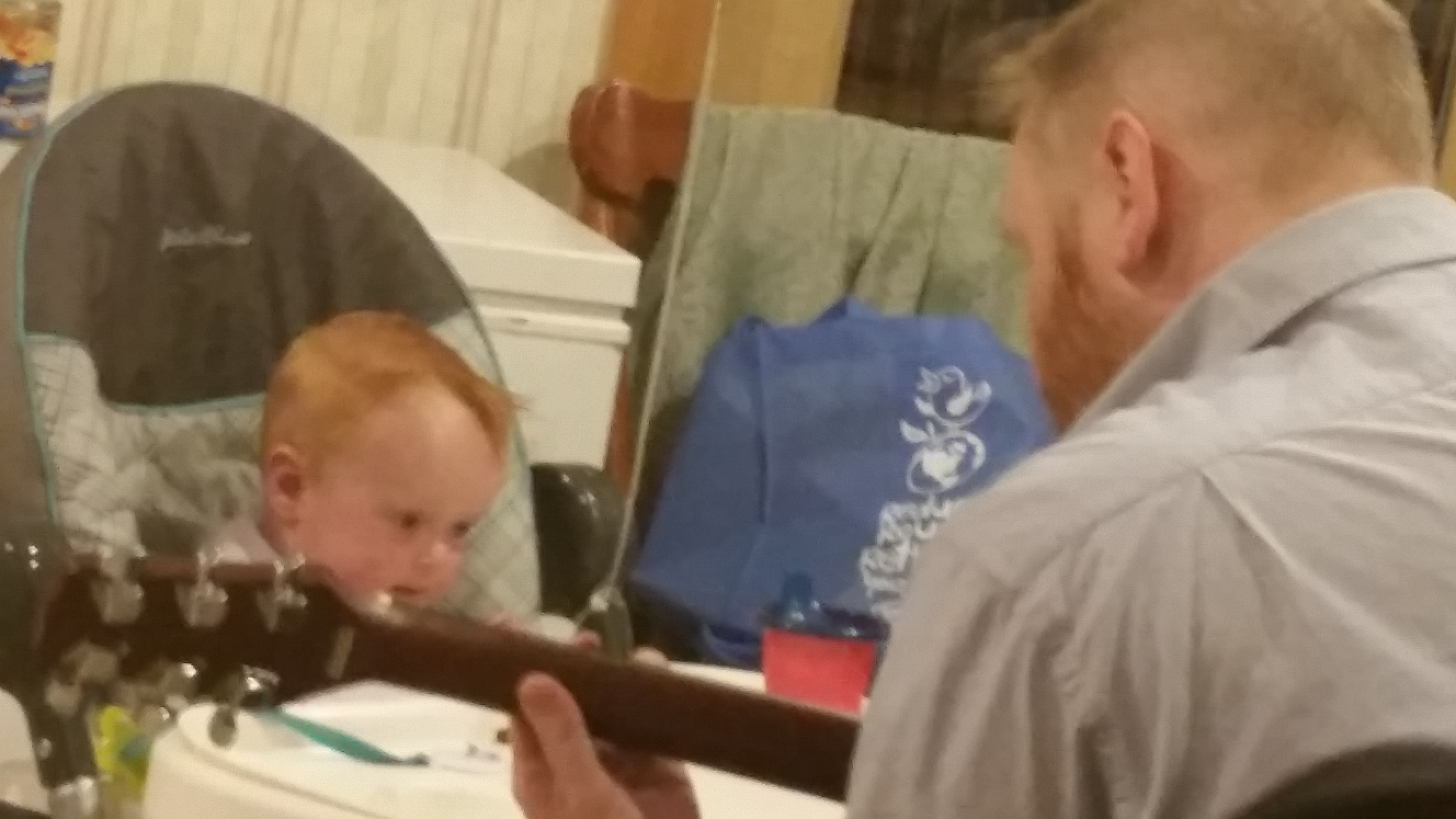 And then he sat in our kitchen snacking, laughing, singing, and high chair dancing to his dad playing guitar: