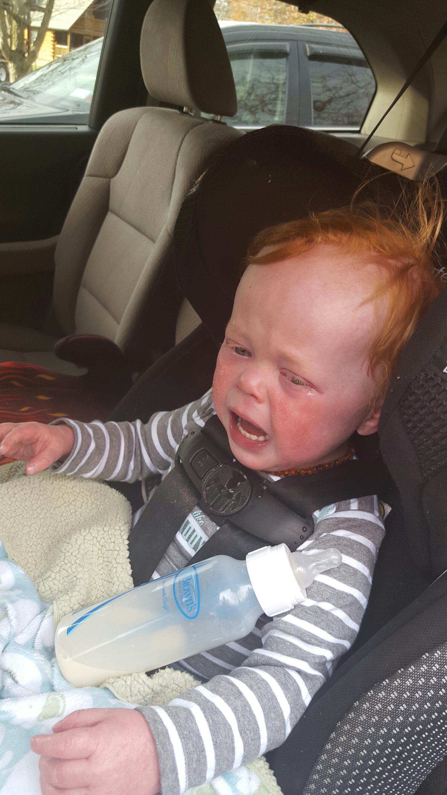 Update: Marshall fell asleep in van, arrived safely at his destination and was playing happily.