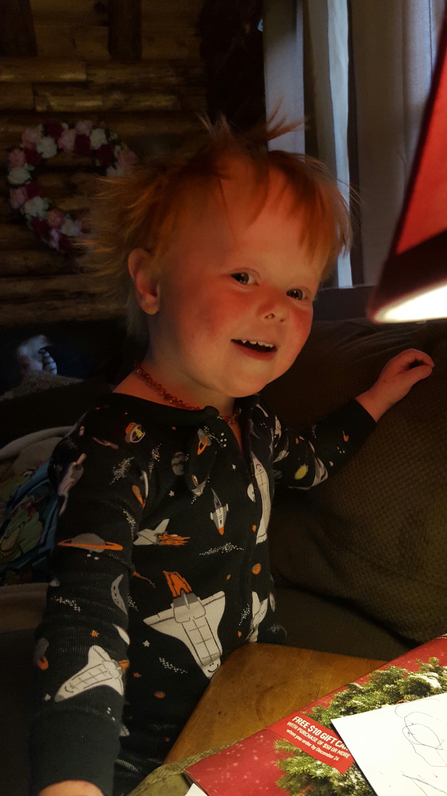 And, in addition to crazy hair and a stuffy nose, Marshall officially has two out of four 2 year molars now!
