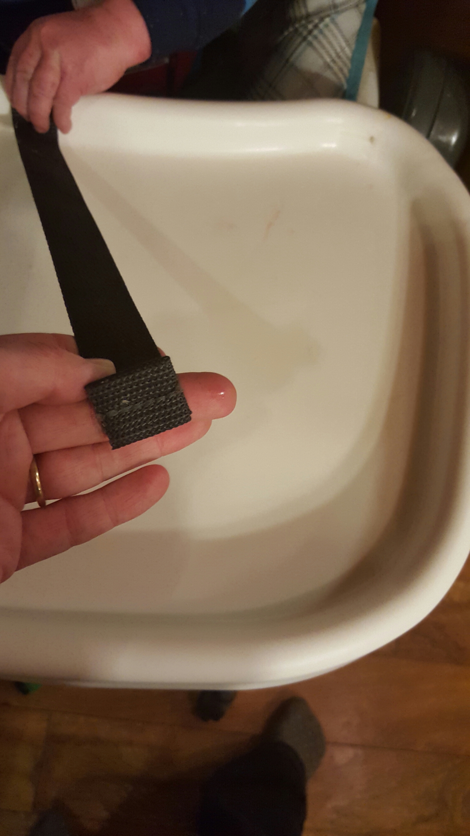 When attempting to strap Marsh into his high chair tonight, I noticed this: