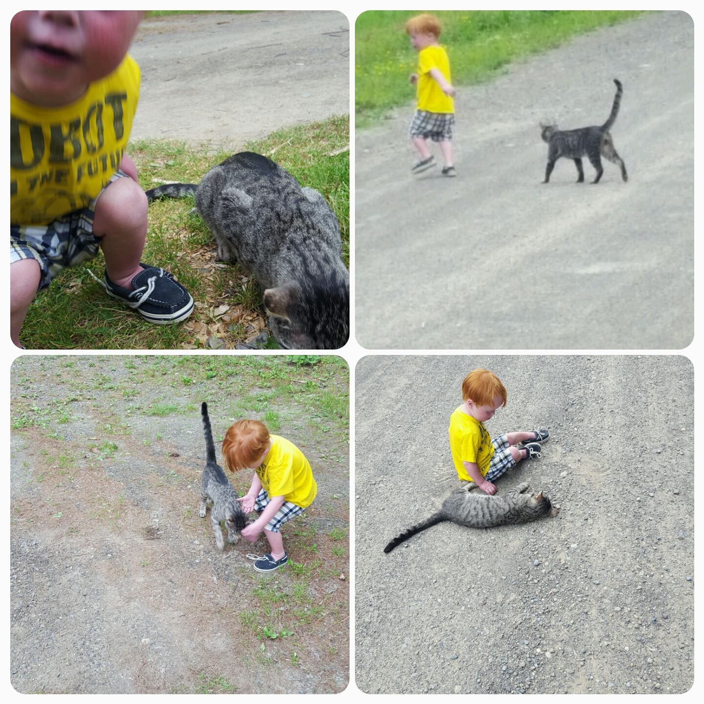 Turns out he must have somehow known about this cat who appeared here yesterday because as soon as Marsh saw the cat, he cheered :”YEAH KITTY HOME!”