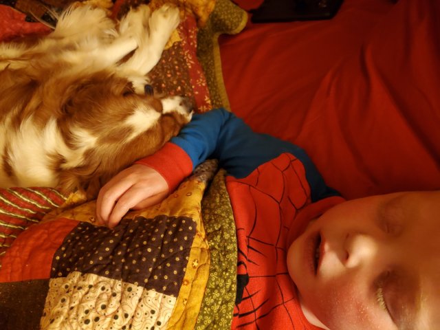 Sleeping Spiderman and his pup❤