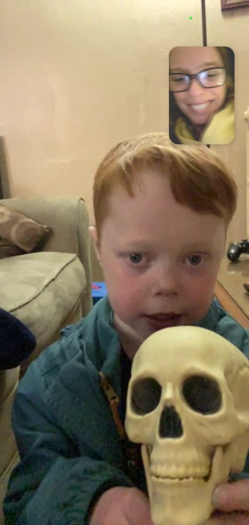 This is a snapshot of Marsh last night introducing me via video chat to his new friend “Dave” ❤️❤️❤️❤️❤️❤️