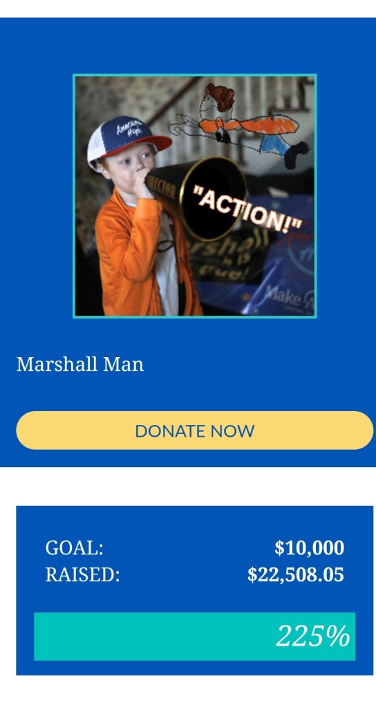 In really good news, Marsh’s wish went to Make A Wish National and he made Wish Hero history by being a super hero since (so far) he helped earn two and one quarter wishes for other kiddos!