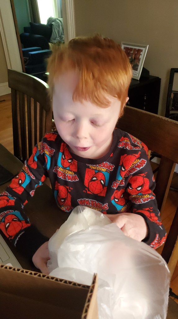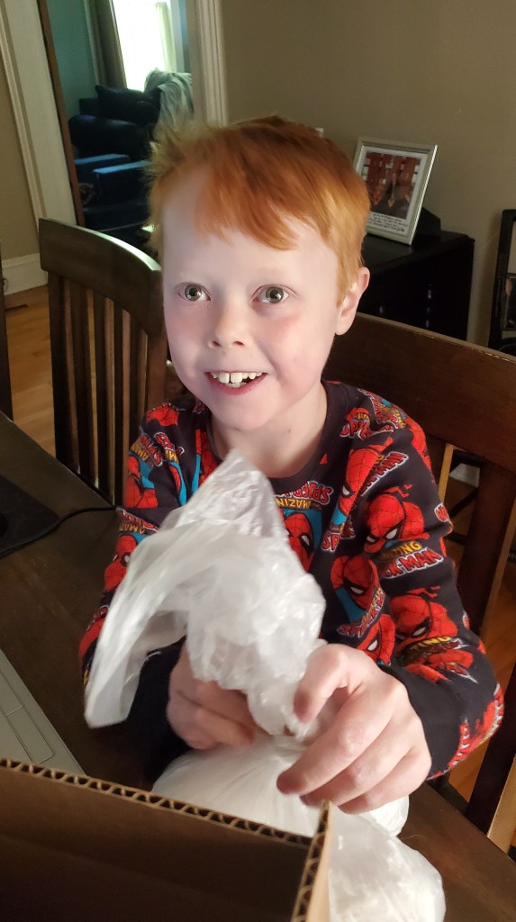 Twelve days later, eight (ish?) phone calls (one in tears) from me to the staff at the Longwood, a call from Marsh’s cath nurse Stephanie, and $28 brought home the very first gift I gave Marsh wasaaaay back when he was a baby.