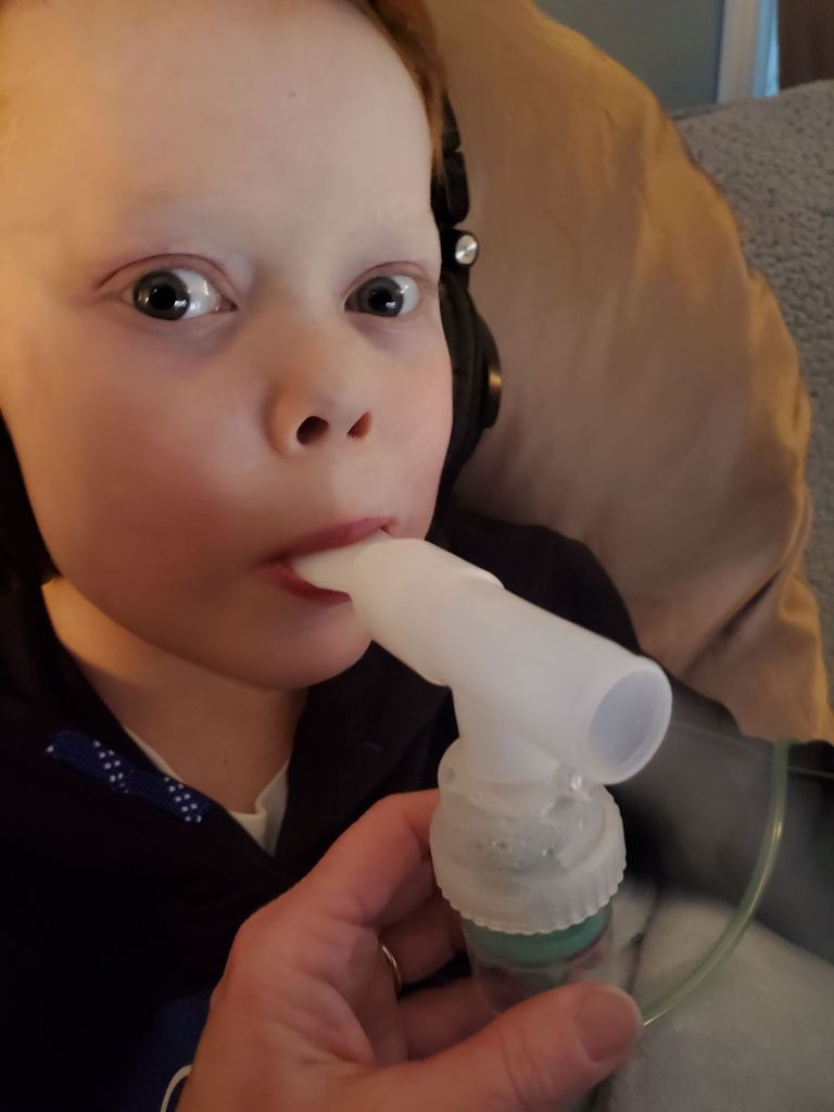 Our favorite 10 year old has a healing but burst ear drum and a touch of pnuemonia. So far the ear is not bothering him and the nebulizer is helping with his breathing.